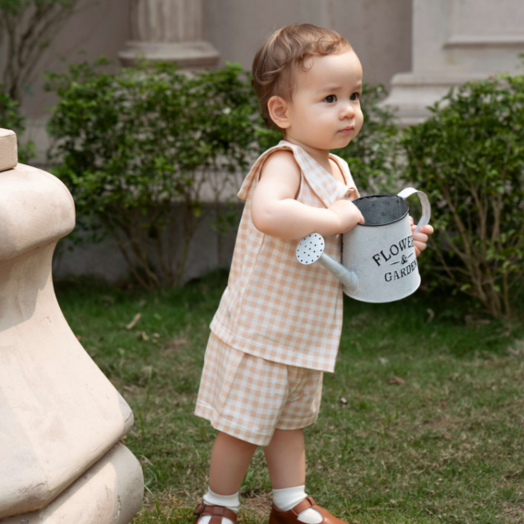 Let little ones play in comfort with our breathable check separates. Crafted from OEKO-TEX® certified cotton that's gentle on delicate skin and perfect for Singapore's tropical weather. The soft beige tones complement any adventure.