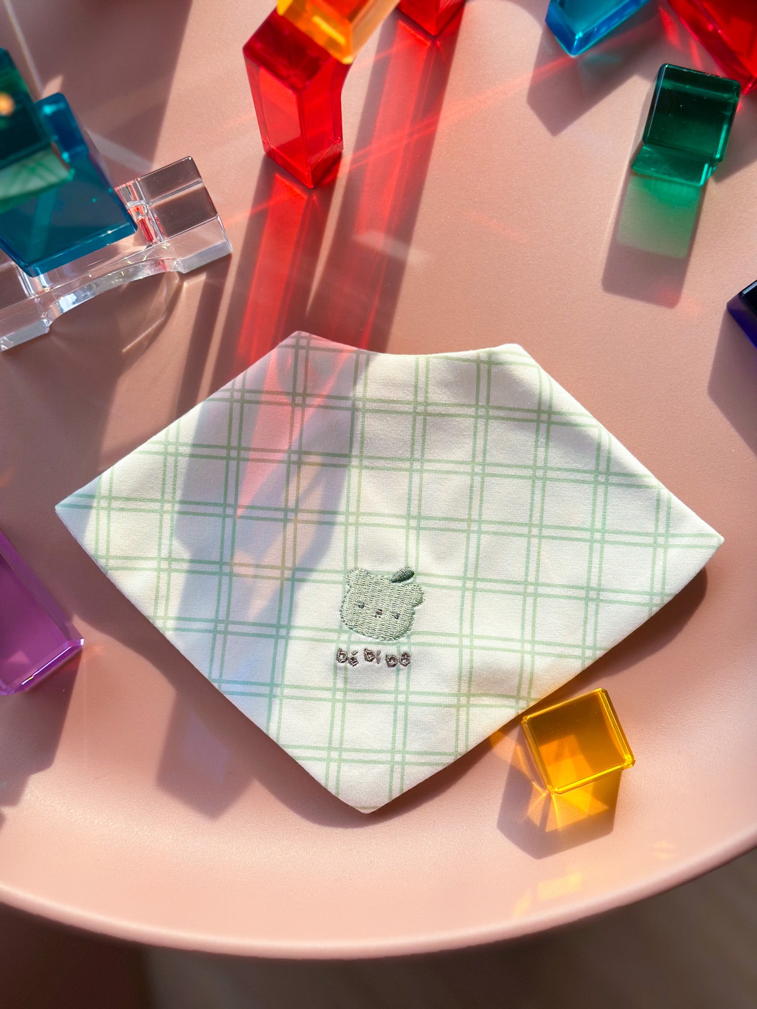 Messy meals made manageable! Our stylish triangle bib in white check keeps little ones looking neat during feeding time. The modern bandana style adds a trendy touch while OEKO-TEX® certified fabric absorbs spills with ease.