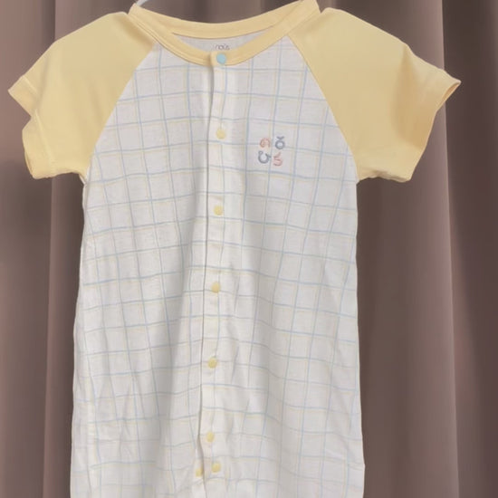 Bright as a sunny day! This cheerful gingham romper in white and yellow brings joy to every moment. The classic check pattern never goes out of style, while OEKO-TEX® certified cotton in a special airy weave ensures comfort in tropical weather.